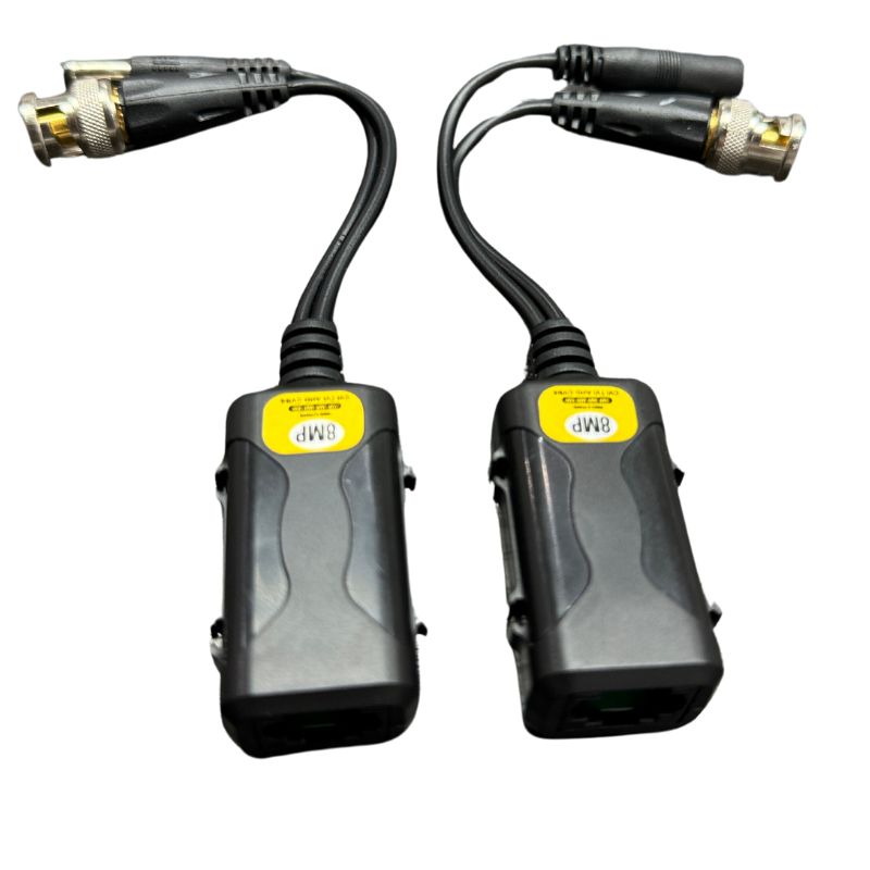 Balun compatible con cámaras HDCVI, CVBS y HDTVI hasta 8MP. Ideal para transmisión simultánea de video y voltaje usando cable de red, simplificando el cableado y reduciendo costos.