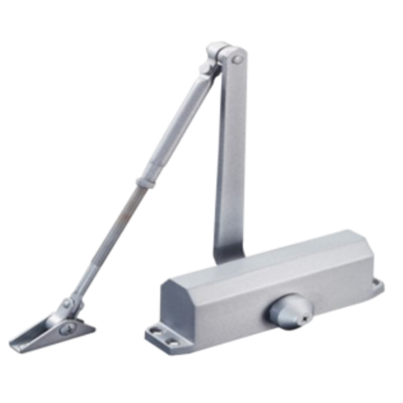 Brazo hidráulico para puertas de 75-100Kg. Controla el cierre suave y automático de la puerta, prolongando su vida útil y mejorando la seguridad.
