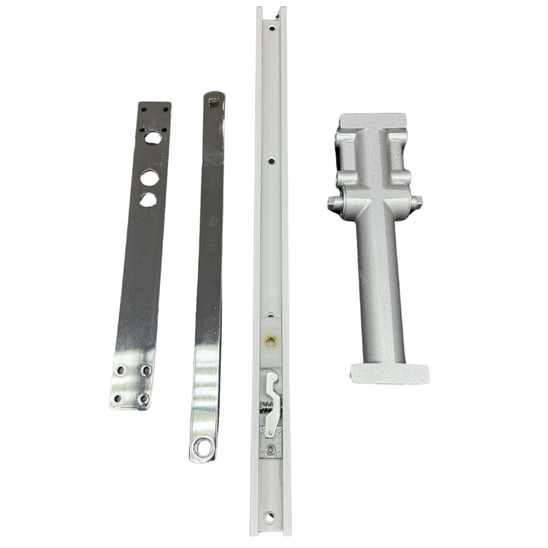 Brazo hidráulico oculto para puertas de 80-105Kg. Ofrece una solución estética y funcional para el control de cierre, sin afectar el diseño de la puerta.