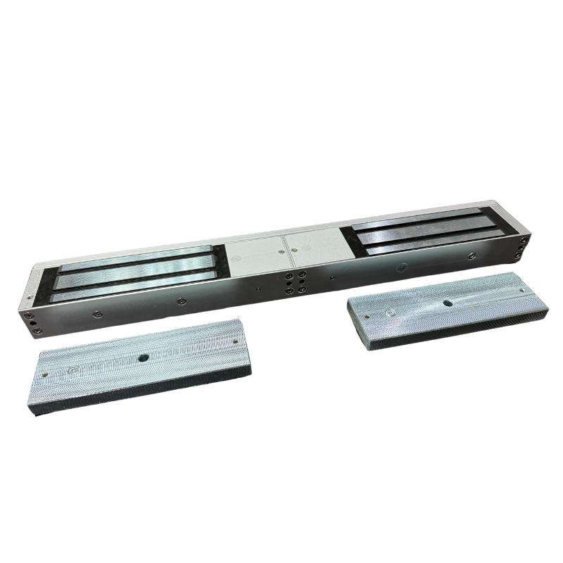 Cerradura electromagnética doble de 2400Lbs de fuerza total y LED de estado. Diseñada para puertas dobles o anchas, ofreciendo seguridad y monitoreo eficiente.