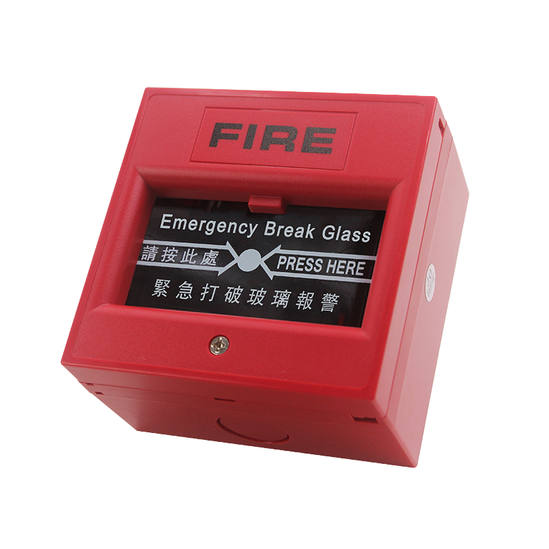 Estación manual de incendio roja, sobrepuesta y tipo botón. Esencial para sistemas de detección y alerta de incendios, permitiendo una respuesta rápida en emergencias.
