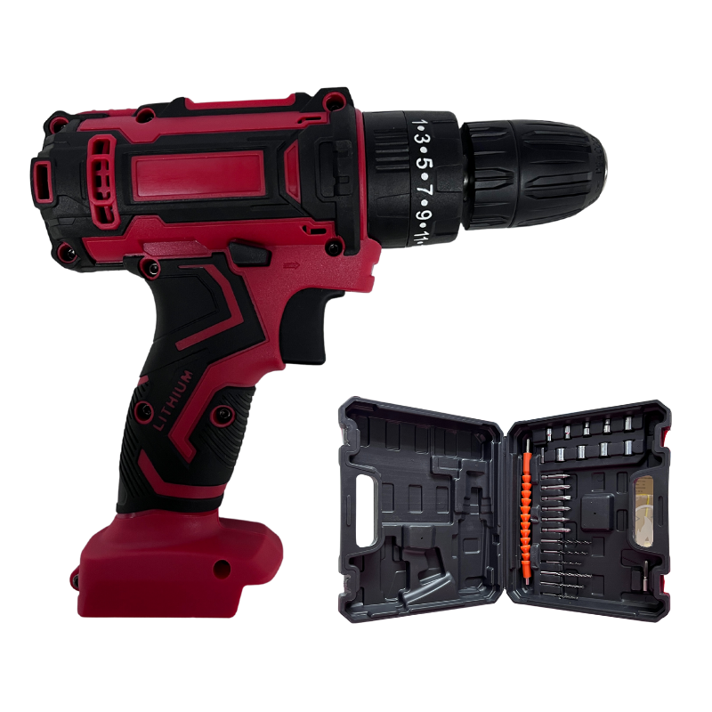 Taladro eléctrico inalámbrico que incluye estuche portátil, batería, fuente de carga, 6 brocas, 3 puntas planas, 3 puntas estrella, 1 extensor flexible y 8 dados. Herramienta versátil para todo tipo de instalaciones.